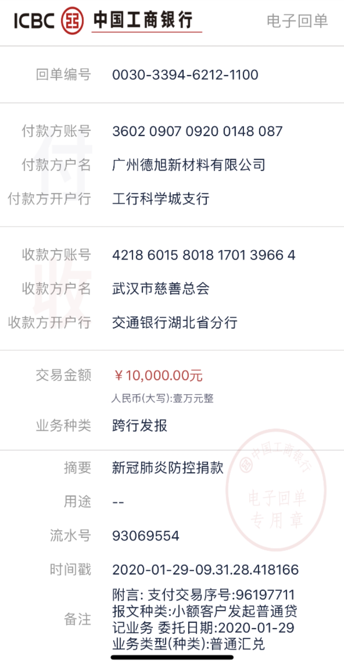 2020年春節(jié)前夕,一場(chǎng)突如其來(lái)的新型冠狀病毒肺炎疫情籠罩武漢、湖北。共同抗擊疫情成為了每一個(gè)人義不容辭的責(zé)任,為此,廣州德旭新材料有限公司向武漢市慈善總會(huì)捐款用于抗擊疫情,切實(shí)履行企業(yè)社會(huì)責(zé)任,為抗擊疫情貢獻(xiàn)力量。