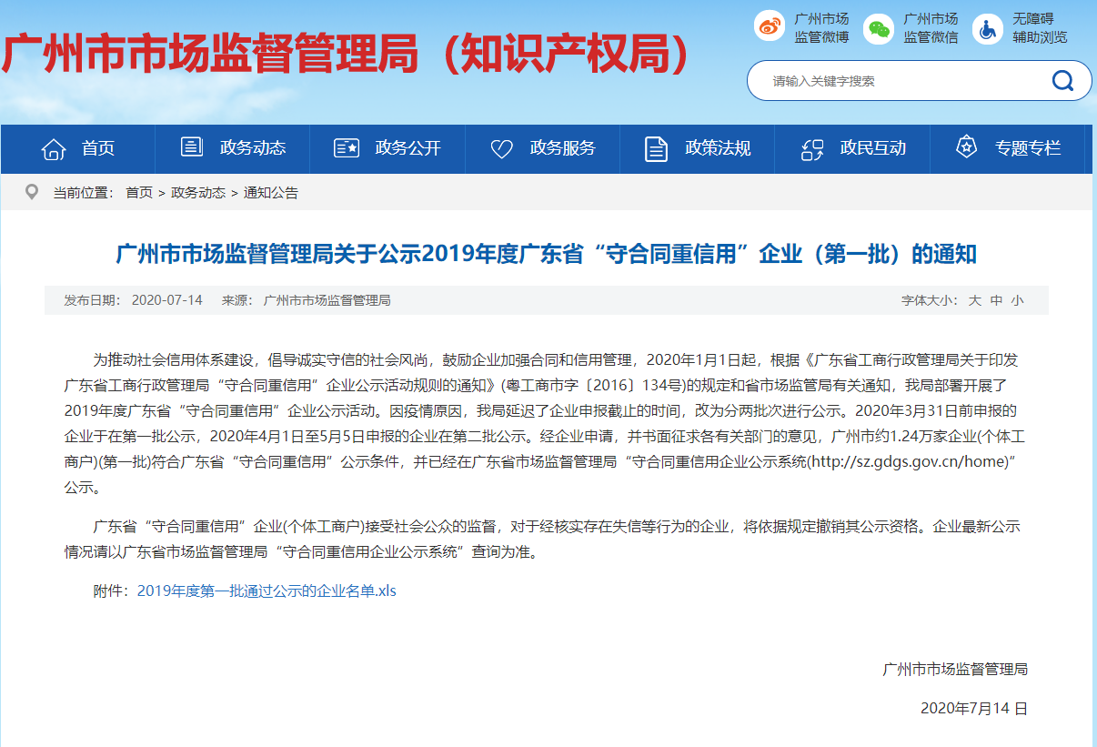 近日,廣州市市場(chǎng)監(jiān)督管理局對(duì)2019年度廣東省“守合同重信用”企業(yè)進(jìn)行公示,我司憑借著重信守約的行為準(zhǔn)則,健全的合同管理體系,誠(chéng)信經(jīng)營(yíng),規(guī)范管理,順利通過了最終評(píng)審,成功獲得了廣東省“守合同重信用”企業(yè)證書。